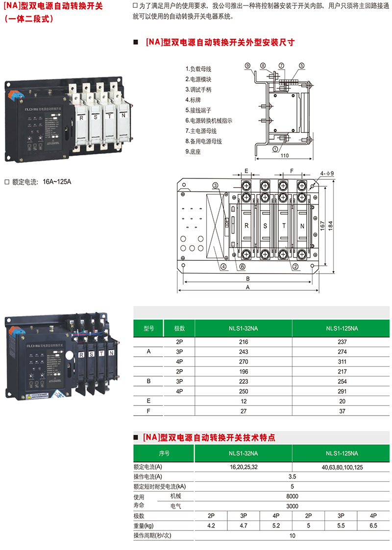 NA型双电源自动转换开关(一体二段式)